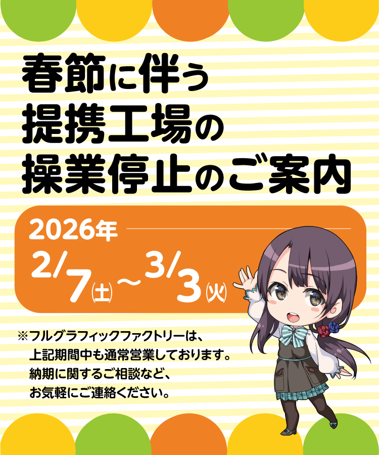 商品一覧 Tシャツ セットインスリーブ ラグランスリーブ ドルマンスリーブ 長袖Tシャツ パーカー・スウェット プルオーバーパーカー ジップパーカー オーバーサイズパーカー もふもふパーカー[NEW] ドライジップパーカー ジップスウェット ケモ耳 パーカー リバーシブルパーカー 秘密のジップパーカー 法被(ハッピ) 半纏 フルグラフィック法被 シャツ 半袖ボタンシャツ 長袖ボタンシャツ 半袖カジュアルシャツ アロハシャツ 開襟シャツ ポロシャツ ベースボールシャツ アウター ウィンドブレーカー スポーツパーカー マウンテンパーカー コーチジャケット リバーシブルスカジャン ハーフパンツ ハーフパンツ 男性用水着(サーフパンツ) アンダーウェア メンズボクサー レディースショーツ バッグ トートバッグ トートリュック ミニショルダー エコバッグ 三角ポーチ BOXポーチ フラットポーチ サークルポーチ ペンケース ブランケット もふもふブランケット リバーシブルブランケット 2WAYトリコットブランケット 冷感ブランケット マフラーブランケット フードブランケット クッションブランケット サークルブランケット[New] ハートブランケット[New] タオル・バスタオル ハンドタオル フェイスタオル マフラータオル スポーツタオル バスタオル サークルタオル フードタオル 枕グッズ 枕カバー 抱き枕カバー クッション 膝枕クッション 中綿入りクッション スクエアクッションカバー ダイカットクッションカバー 猫耳丸形クッション サイコロクッション ストラップ 正方形クッションストラップ ダイカットクッションストラップ ネックストラップ タペストリー B1タペストリー B2タペストリー 等身大タペストリー ミニタペストリー 二重タペストリー B2布ポスター その他商品 プレイマット・マウスパッド フロアマット マイクロファイバークロス マフラー ネクタイ ランチョンマット エプロン 布マスク 色校正 ご利用に関するご案内 お支払い方法 ご注文の流れ 納期について 返金・返品条件 送料 テクニカルガイド テンプレート デザインデータの作成方法 データの入稿方法 色校正について 著作物に関しての注意事項 会社案内 採用情報 フルグラの秘密 会社概要 法人のお客様へ お問い合わせ よくあるご質問 生地サンプル請求 お得情報 オリジナル法被企画応援キャンペーン クチコミ割引